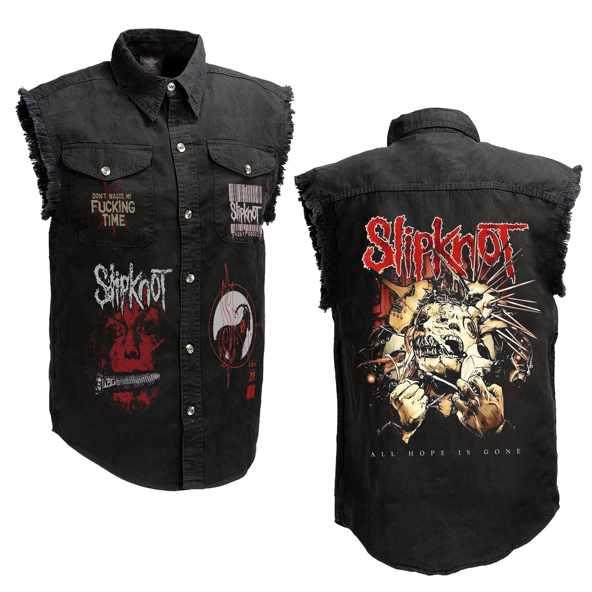 Elevate your wardrobe with this bold and stylish Sleeveless Denim Jacket, inspired by the spirit of adventure and rebellion. Designed for fans of Dungeons & Dragons and lovers of retro fashion, this jacket fuses classic denim aesthetics with modern flair and practical features.