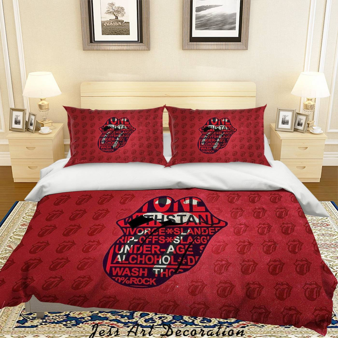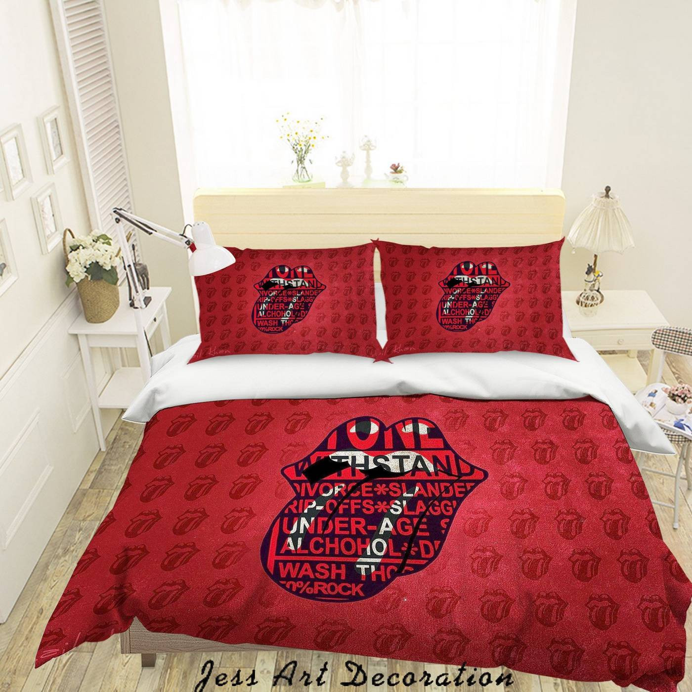 The Rolling Stones Merch 3D ROCK BAND THE ROLLING STONES QUILT COVER SET BEDDING SET PILLOWCASES 62