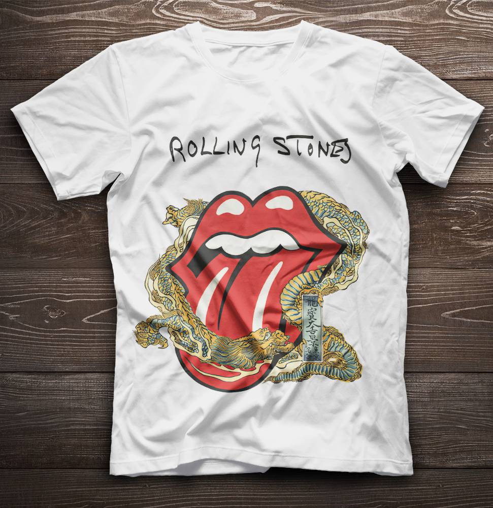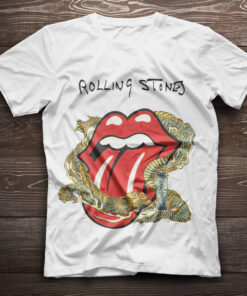 The Rolling Stones Merch Big Tongue Gold Dragon Tattoo Japan Style TShirt Sweatshirt Hoodie – White